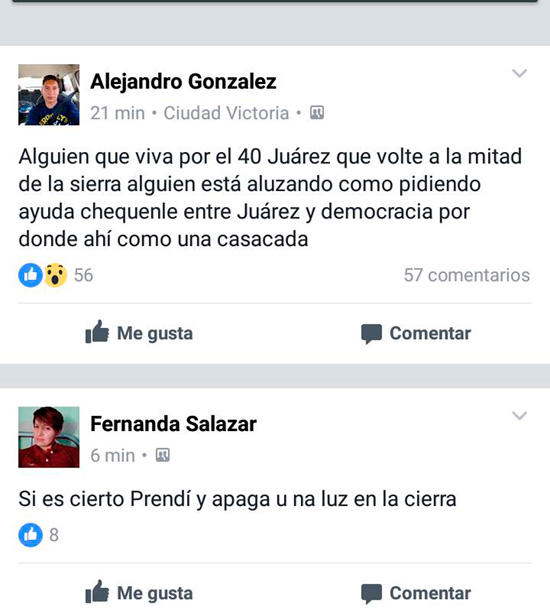 Usuarios de redes sociales reportan la aparición de una luz proveniente de las faldas de la Sierra, que se trataría de un pedido de auxilio.