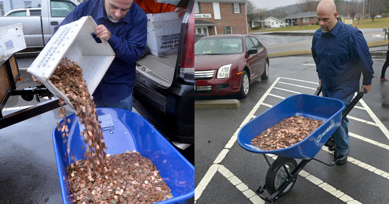 Nick Stafford llenó cinco carretillas con más de 300 mil monedas de un centavo