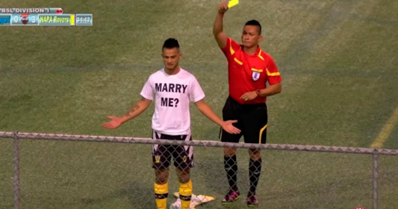 Se lleva tarjeta amarilla por proponer matrimonio en la cancha (Video)