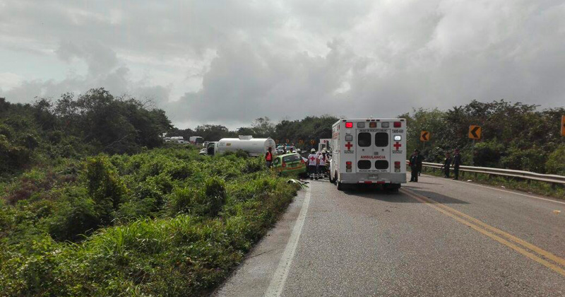 TAMPICO ALTO, Veracruz.- Un taxista perdió la vida en forma brutal al participar en una carambola vehicular ocurrida sobre la Carretera Federal Matamoros Puerto Juárez, además resultaron gravemente lesionados, su pasajera y conductor de una camioneta, en el percance participó una pipa que al parecer transportaba gasolina.