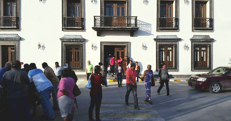 Posteriormente cerca de las 16:00 horas los manifestantes arribaron a la presidencia municipal, donde fueron atendidos por el secretario del R. Ayuntamiento Jesús Roberto Moctezuma Gracia Cantú.