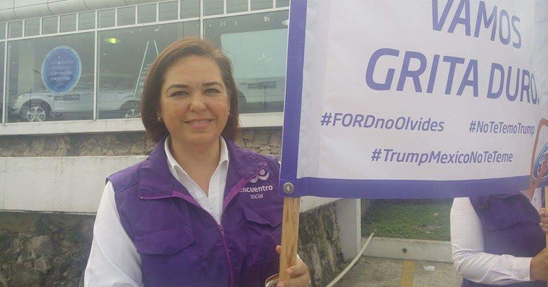 TAMPICO, Tamaulipas.- En este momento representantes del partido Encuentro Social de Tampico protestan en contra de la Agencia Ford y el rompimiento comercial con México atendiendo los intereses del presidente Donald Trump.