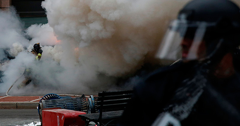 Pese a la violencia, el fuego y, en algunos casos, la sangre, otros aprovechaban el caos en el que se ha sumido la ciudad para trasladar a McPherson los excedentes no vendidos de camisetas de Trump que durante los disturbios se anunciaban al grito de «leña para el fuego».