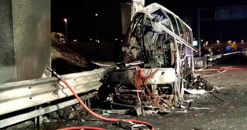 El accidente se produjo poco antes de la medianoche. Por razones que se desconocen, el autocar chocó contra uno de los pilones de soporte de un paso elevado de la autopista A4 que comunica Milán y Venecia. El impacto fue muy violento. El vehículo prendió fuego y quedó destrozado.
