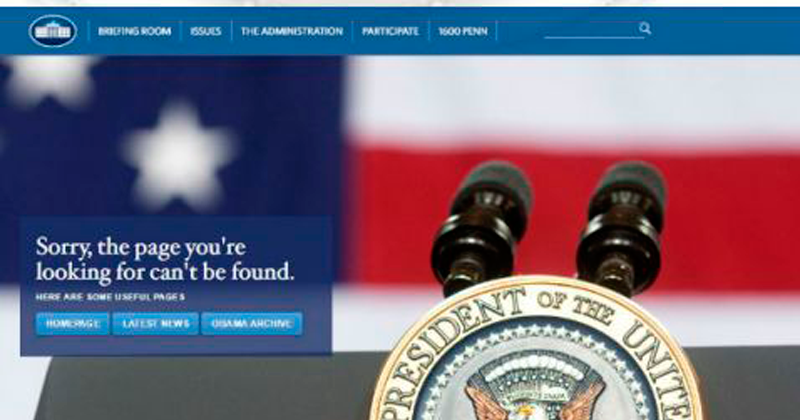 Donde la administración de Barack Obama tenía secciones dedicadas al cambio climatico, y una version de todo el contenido, español, ahora se muestra información del nuevo gobierno