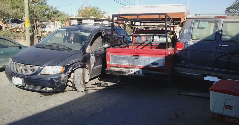 Chofer de una vagoneta se le zafa la rótula y se va contra contra camioneta, para ambas estrellarse con otra panel debidamente estacionada