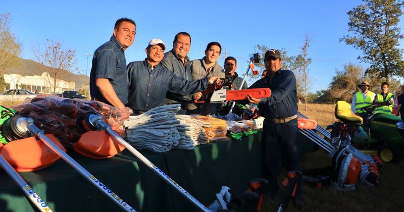 La mañana de este martes se dio un paso importante con la entrega de 5 tractores, 25 desbrozadoras, sierras, además de equipo especializado para el trabajo y seguridad