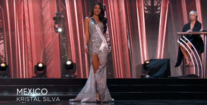 Kristal demostró su gran belleza y seguridad en la pasarela en traje de baño y posteriormente en vestido de noche, portando un entallado vestuario en color plateado.