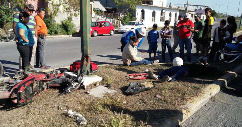 Se desplazaban en una motocicleta, pero el piloto pierde el control y después de derrapar varios metros se estrellan contra una lámpara de luz mercurial