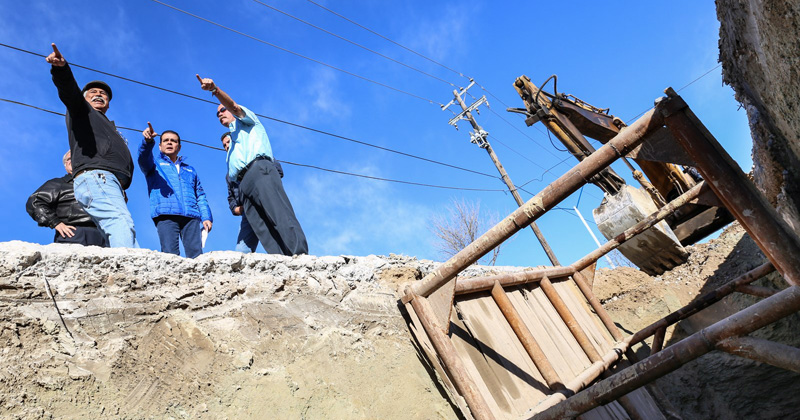 NUEVO LAREDO, Tamaulipas.- El presidente municipal, Enrique Rivas constató el avance de los trabajos que se realizan en el colector Anáhuac, en el parque industrial Río Grande, al hacer un recorrido de supervisión por las obras que acabarán con el brote de agua residuales en las colonias La Fe, Villas de La Fe y Voluntad y Trabajo No.1.