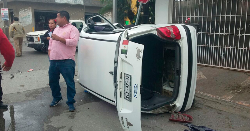 Una mujer resultó lesionada al impactar su unidad contra un auto compacto. Tras el golpe, su auto terminó volcado y en el cual transportaban perros