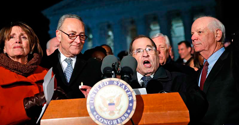 Encabezados por el líder de la minoría en la Cámara alta, Chuck Schumer, y por su par en la Cámara de Representantes, Nancy Pelosi, los demócratas celebraron una vigilia por aquellos refugiados e inmigrantes que se han visto afectados por la orden ejecutiva del mandatario.