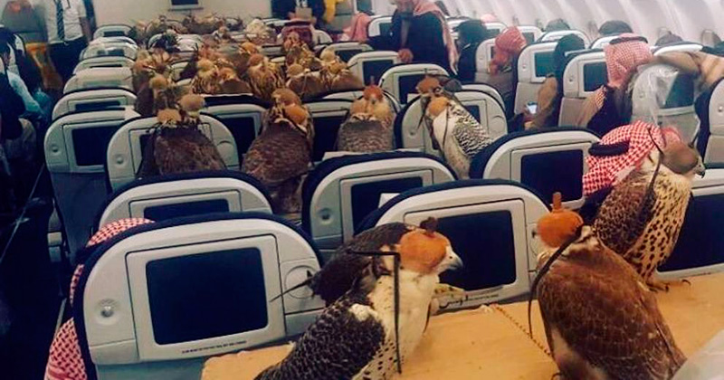 Un príncipe árabe no puede dejar de viajar con sus mascotas, aunque sean aves de cacería…