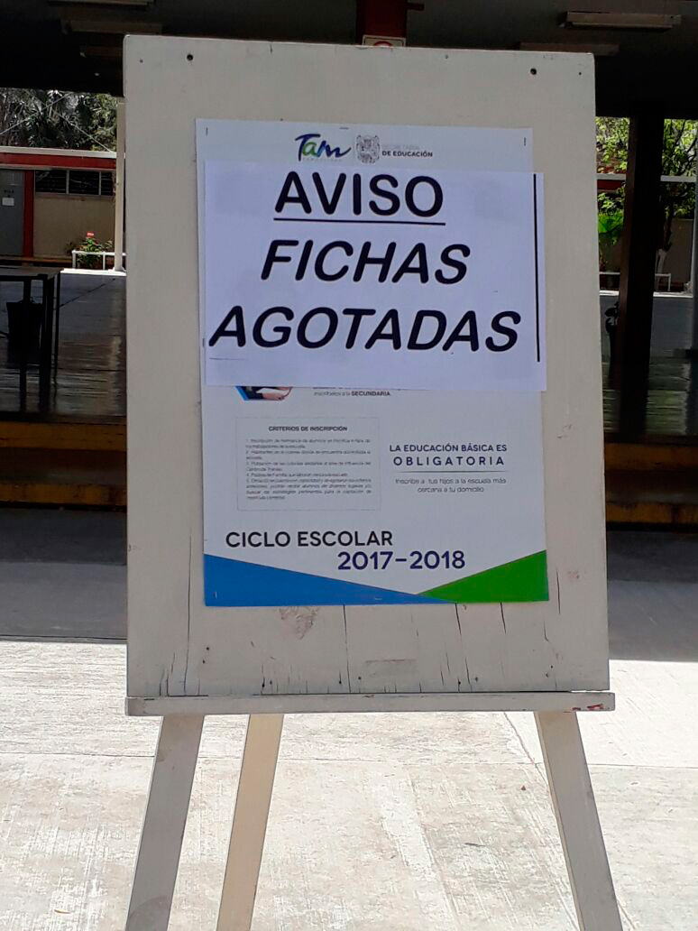 CIUDAD VICTORIA, Tamaulipas.- En el primer día de inscripciones, la Escuela Secundaria Técnica «Álvaro Obregón» se quedó sin fichas.