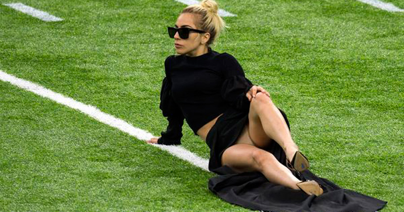 CIUDAD DE MÉXICO.- A minutos de comenzar el evento deportivo más importante de Estados Unidos, Lady Gaga salió a recorrer el césped del NRG Stadium de Houston y fue víctima de su propio vestido.