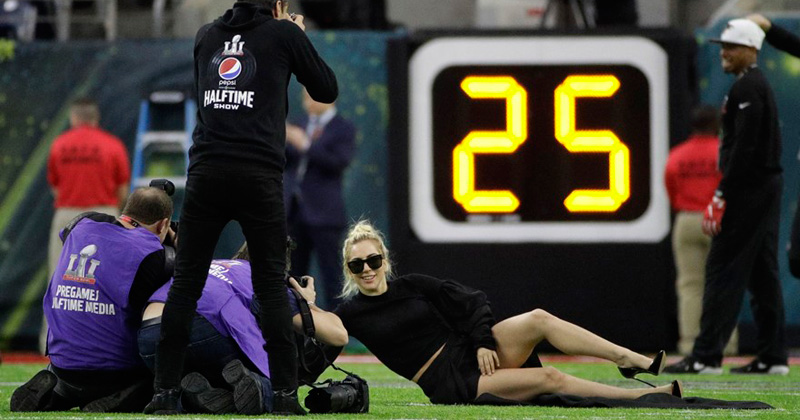 CIUDAD DE MÉXICO.- A minutos de comenzar el evento deportivo más importante de Estados Unidos, Lady Gaga salió a recorrer el césped del NRG Stadium de Houston y fue víctima de su propio vestido.