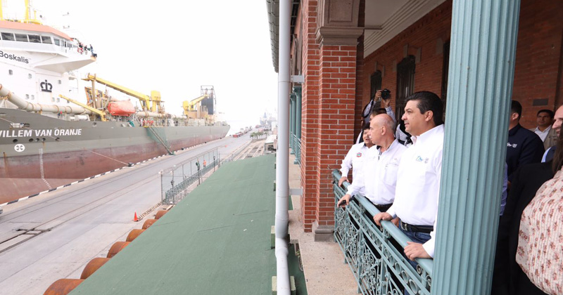 García Cabeza de Vaca y la comitiva realizaron después de la reunión de trabajo, un recorrido por el Edificio Histórico de la ex Aduana Marítima de Tampico.