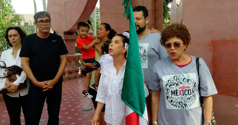 Apenas una decena de personas acudió a la cita en Tampico donde cantaron el Himno Nacional