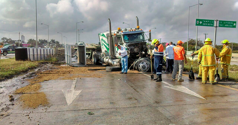 ALTAMIRA, Tamaulipas.- Un vehículo de carga enfrentó una falla mecánica cuando se dirigía al puerto industrial de Altamira.