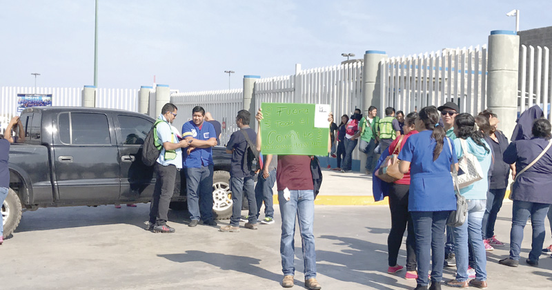 Trabajadores de la Delphi II complican la producción con una manifestación frente a la planta para exigir la destitución de su dirigente, Mercedes López Lozano; directivos de la empresa se deslindan del conflicto, pero toman nota de la ausencia de los trabajadores
