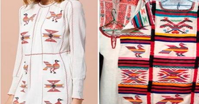 El ‘Vestido Midi’ de la marca española Intropia lleva el mismo bordado que las mujeres artesanas de Tlacoazintepec plasman en los huipiles chinantecos