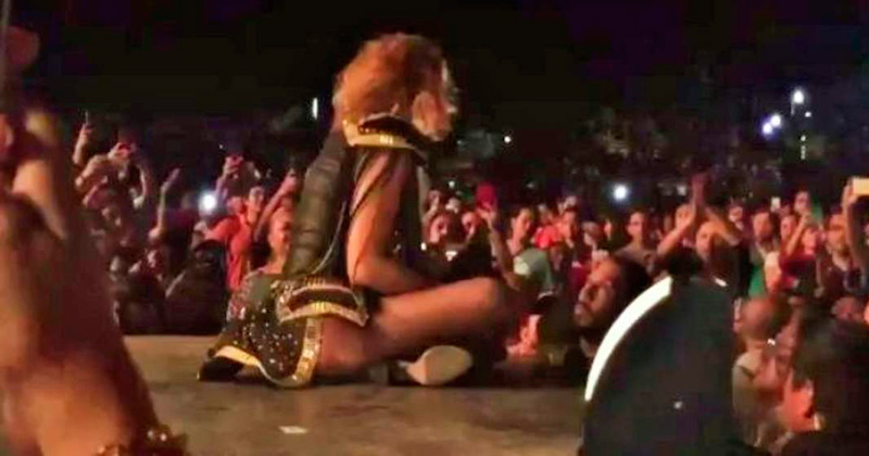 La cantante mexicana Paulina Rubio sufrió una dolorosa caída durante una presentación en Campeche el fin de semana, misma que quedó grabada por los asistentes