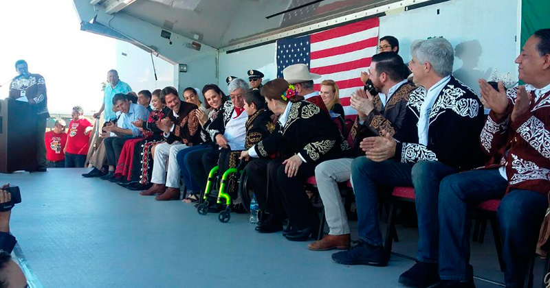 Con la presencia inédita de los Congresistas Federales estadounidenses Filemón Vela y Vicente González inició la ceremonia que encabezan los alcaldes de Matamoros, Jesús de la Garza y el Mayor de Brownsville, Tony Martínez.