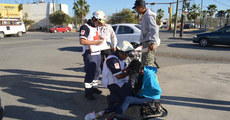 Joven motociclista choca con un automóvil al omitir un alto. Hiere a una muchacha que lo acompañaba y momentos más tarde recibe reprimiendo por la mamá de ésta