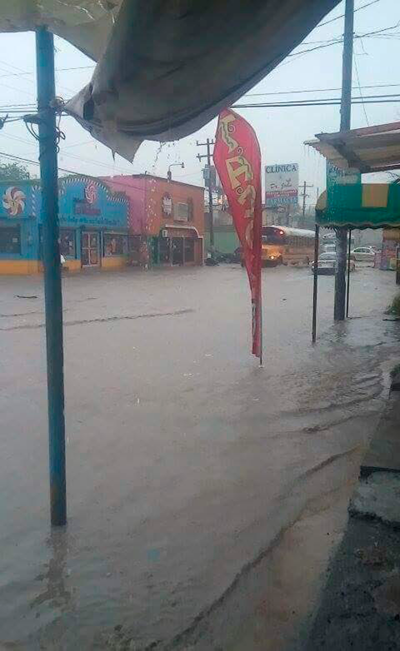 Los principales bulevares de la localidad como Hidalgo y Morelos también presentan encharcamientos.