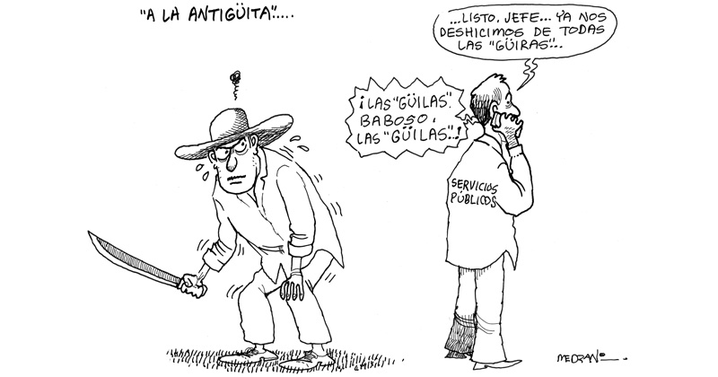 Trabajadores de Servicios Públicos cortan césped con machetes, luego que les retiraron las güiras y podadoras