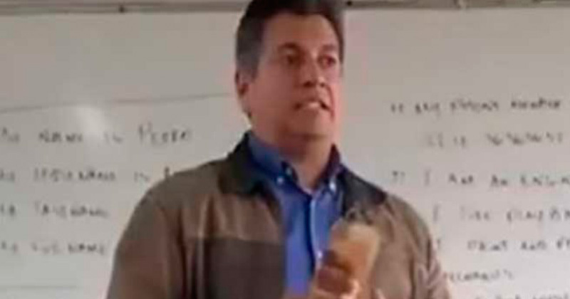 Durante su clase contó una historia en la que se narraba un caso de maltrato de un hombre a su esposa