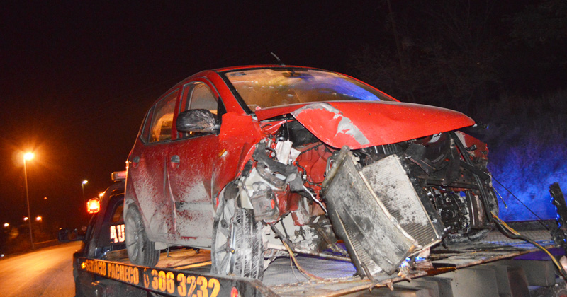 Empleado sufre lesiones de consideración al estrellar de lleno su coche contra una lámpara de luz mercurial. Aparentemente andaba ebrio. Fue hospitalizado