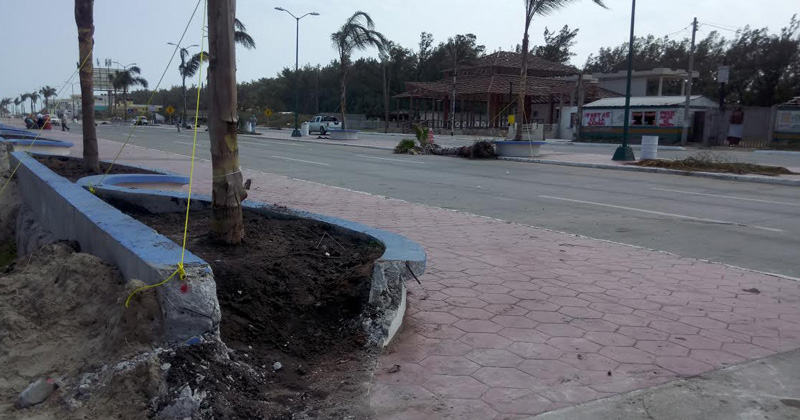Rompieron jardineras del bulevar costero para realizar rellenos y construir locales de madera