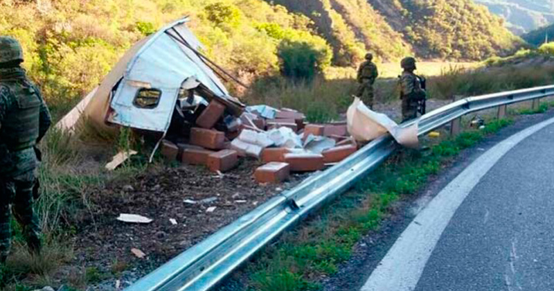 Vuelcan camión y huyen dejando 1.5 toneladas de mariguana