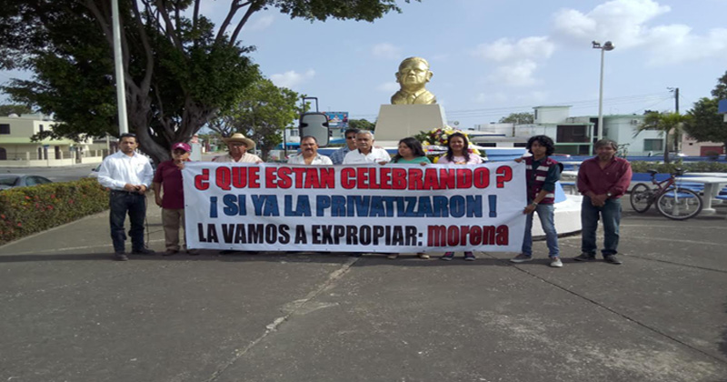 En el marco de la conmemoración de la Expropiación Petrolera, los manifestantes abordaron el tema de la venta de la industria