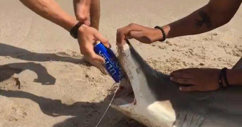 Dos jóvenes abrieron la lata con la ayuda de los colmillos de un escualo aparentemente muerto ; las imágenes han causado indignación en redes sociales