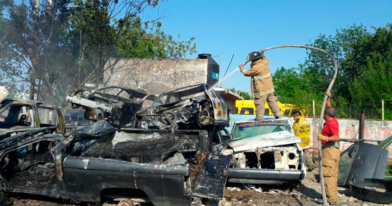 Empleados del yonke desmantelaban con un soplete una de las unidades cuando ésta comenzó a arder, desatando una reacción en cadena que daño 5 carros más