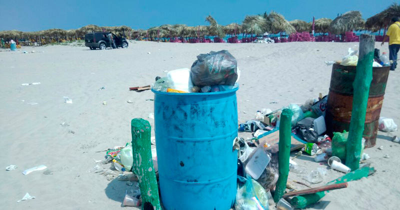 CIUDAD MADERO, Tamaulipas.- Por la gran afluencia de bañistas que se registró durante el puente, la zona norte de Playa Miramar quedó llena de basura.