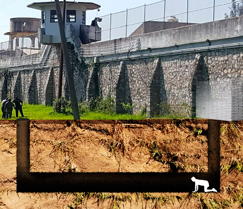 Cavaron un túnel al extremo nororiente de la vieja penitenciaría construida en la década de los 40s; la excavación tenía salida en el terreno que aún pertenece al penal, pero con aparente facilidad los prófugos destrozaron parte de la tela ciclónica para salir por su propio pie al potrero donde caminaron cerca de 100 metros para después abrir un falsete y estar en plena libertad.