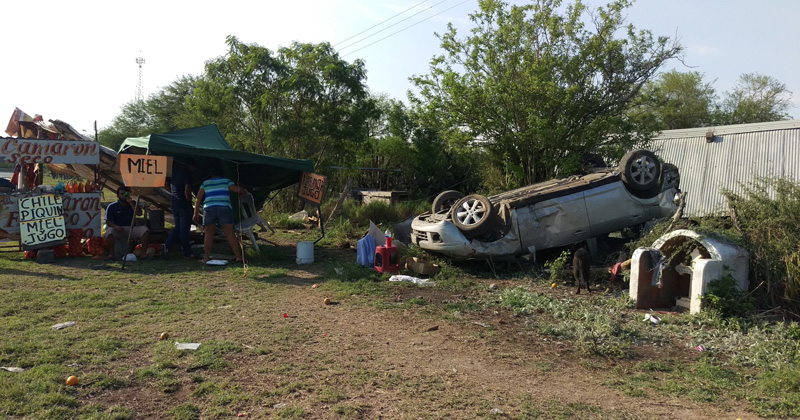 La pareja se encontraba vendiendo su mercancía en la orilla de la carretera, cuando un automovilista vuelca y se los lleva de encuentro