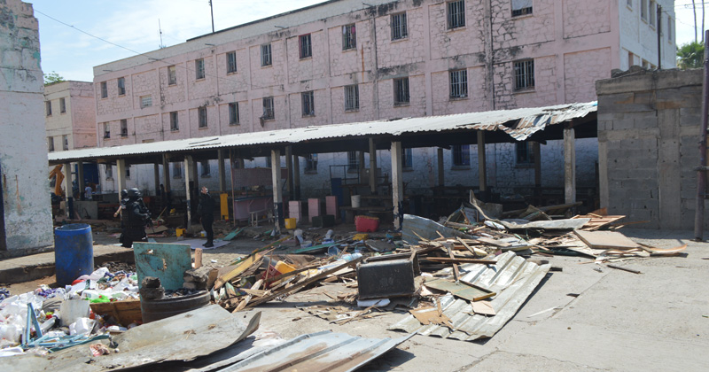 Retroexcavadoras derribaron las construcciones improvisadas como tiendas en donde se vendían refrescos, cigarros, golosinas, comida y hasta cerveza, en donde el jueves por la noche, tras realizarse una revisión, se encontraron algunas navajas que utilizaban los internos como armas.