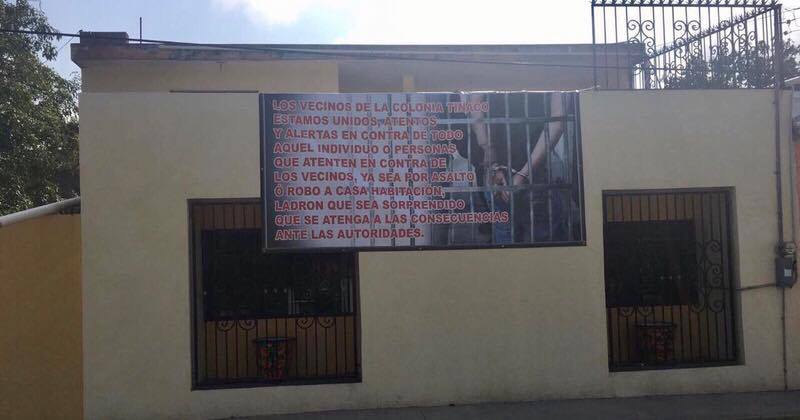 Ante la ola de robos en la colonia Tinaco, los habitantes colgaron anuncios en sus casas advirtiendo a los delincuentes que se atengan a las consecuencias