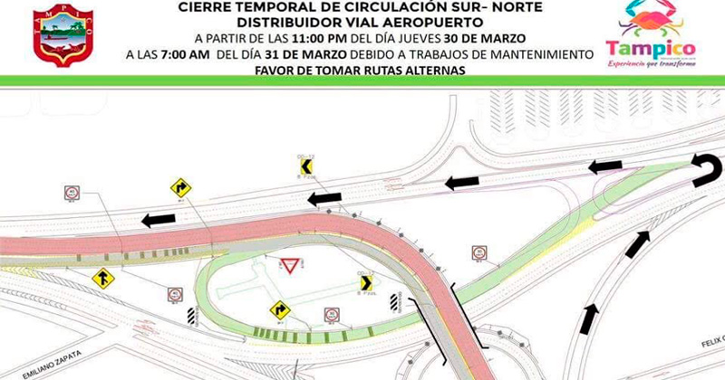 Cerrarán vialidades frente al Aeropuerto de Tampico