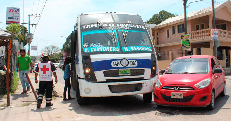 Una mujer de la tercera edad resultó lesionada tras impactarse el autobús en el que viajaba