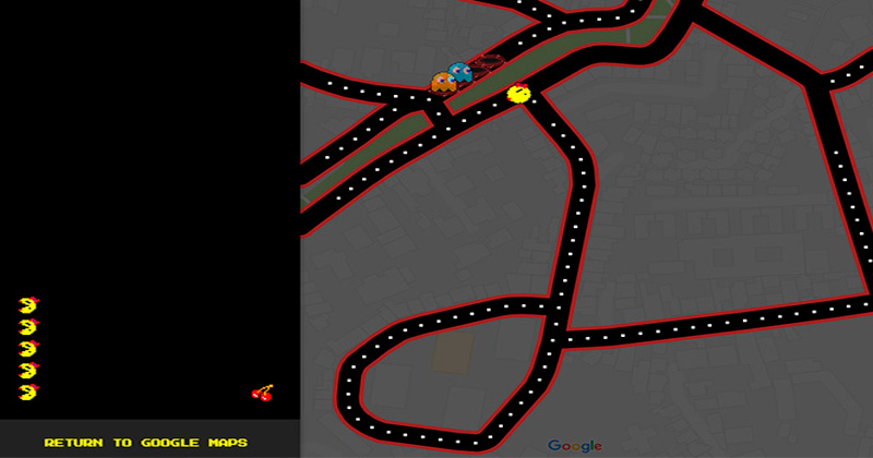 2. Google ha convertido sus mapas en un Comecocos, al igual que el año pasado. Se puede jugar tanto en el móvil como en el ordenador. Solo hay que hacer clic en el logo del videojuego, que aparece con pintalabios, un lunar y un lazo. Se trata de Ms Pac Man, la versión femenina del icónico videojuego. Si pinchas en la imagen puedes ver las calles sin inocentada de por medio.
