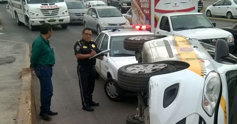 TAMPICO, Tamaulipas.- Espectacular volcadura de un taxi tipo I-10 ocurrió sobre el carril de sur a norte de la Prolongación de la Avenida Hidalgo, esquina con Paseo Lomas de Rosales.