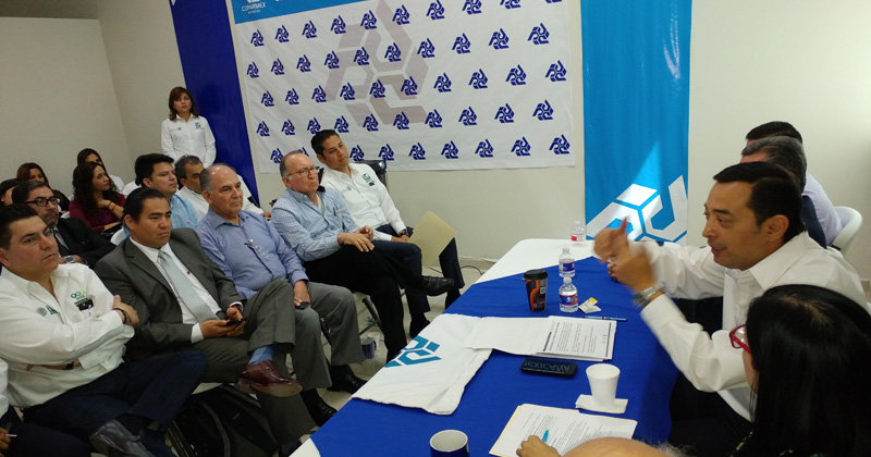 Las instituciones sostienen una reunión de trabajo en la sede empresarial en aquella frontera; delegado federal expone un resumen de logros y resultados de su gestión al frente del IMSS Tamaulipas