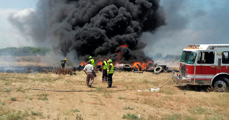 CIUDAD MADERO, Tamaulipas.- El incendio de neumáticos generó la movilización de los cuerpos de rescate la tarde de este domingo de Miramapolis, a la altura de las Dunas.