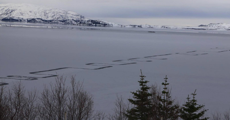 El pasado 9 de marzo «alguien observó un diseño de extraña apariencia en la capa de hielo del lago Thingvallavatn que todavía no se ha esclarecido y que los lugareños nunca antes habían visto», explicaban ese mismo día en su página de Facebook los responsables del Parque Nacional de Thingvellir, donde se encuentra una parte del lago, en el suroeste de Islandia.