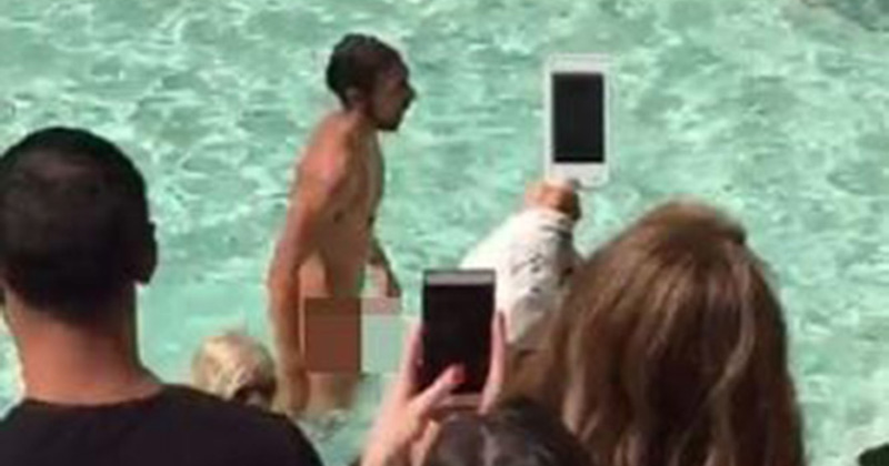 El hombre se desvistió frente a la multitud, entró a la fuente y la cruzó nadando; las autoridades lo consideran un agravio contra el patrimonio nacional